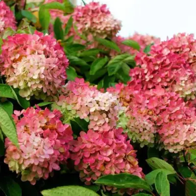 Гортензия Петит Лантерн описание ее цветения: оно обильное и продолжительное, длится со июля по октябрь. Соцветия удлиненно-конические, очень крупные, расположены на верхушках побегов. Цвет проходит удивительную метаморфозу: он изначально белый, затем становится кремовым, а к осени приобретает насыщенный малиновый оттенок. В одно время на кусте красуются кремовые и розовые цветки, создавая эффект двухцветного сияния. Соцветия состоят в основном из стерильных цветков, что делает их очень пышными. Сорт обладает высоким декоративным потенциалом и может выращиваться как штамбовая культура.