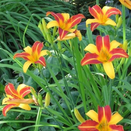 Цветы у Франс Халс крупные — до 14 см в диаметре, с чёткой, графичной двухцветной окраской: внешние лепестки — солнечно-жёлтые, как летний день в зените, а внутренние — насыщенно-красные, прорезанные яркой золотистой жилкой. Такое сочетание оттенков смотрится динамично, как всплеск огня среди зелени. Цветок простой по форме, но благодаря контрасту и размеру выглядит как художественный мазок на живом полотне сада.