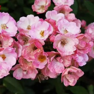 Окраска цветка этой розы яркая и насыщенная. Лепестки могут быть ярко-розового или светло-розового цвета с перламутровой обратной стороной, белым центром и желтыми тычинками. Форма цветка чашевидная, а его размер средний - около 3-4 см в диаметре. Количество лепестков может варьироваться от 4 до 11, что добавляет изысканности и элегантности цветку.