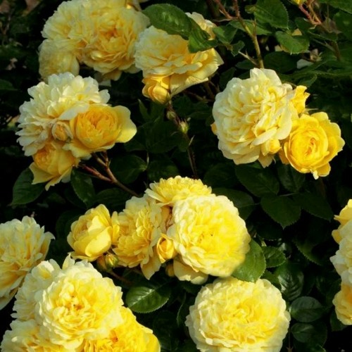 Цветок этой розы является настоящим произведением искусства. Днем он распускается в нежных молочно-кремовых оттенках, а к вечеру приобретает более насыщенный тон с серебристым отливом. Основная окраска цветка - желтая, а насыщенность цвета - яркая. Бутоны имеют форму помпона, а цветки отличаются романтической формой. Размер цветка крупный, диаметр составляет от 8 до 10 сантиметров. Количество лепестков в цветке достигает 85, что делает его густо махровым. Цветки располагаются в соцветиях, на каждом стебле обычно находится от 3 до 5 цветков. Соцветия считаются малоцветковыми.