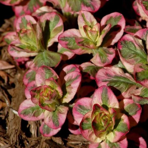 Растение вырастает до 60–70 см в высоту и 40–50 см в ширину. Стебли прямостоячие, прочные, образуют плотный вертикальный каркас. Крона компактная, слегка колонновидная. Листья — широколанцетные, цельные, с чёткой пестротой: молодая листва с розовым оттенком, позже — зелёная с белой окантовкой. Такое сочетание придаёт кусту графичность даже вне периода цветения.